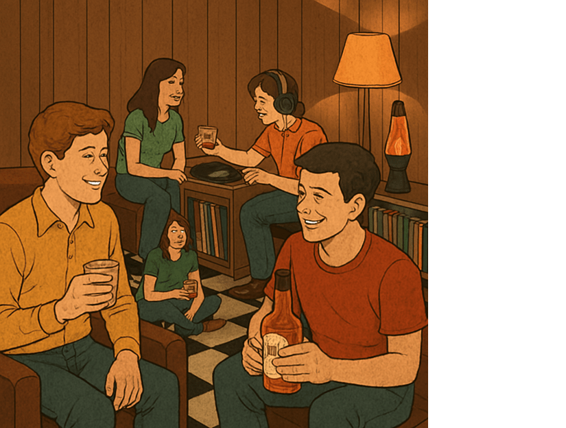 Back in the day, our basement wasn’t just a hangout—it was a teenage Shangri-La with vinyl grooves, checkerboard tiles, and just enough parental distance to feel like we were living on the edge. My brother and I would head down there with our friends to spin records, swap stories, and—unbeknownst to each other—conduct covert operations involving Dad’s liquor cabinet.