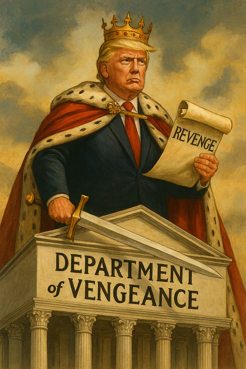 He’s already renamed the Department of Defense the Department of War — now he’s eyeing the Department of Justice for a makeover: the Department of Vengeance.
