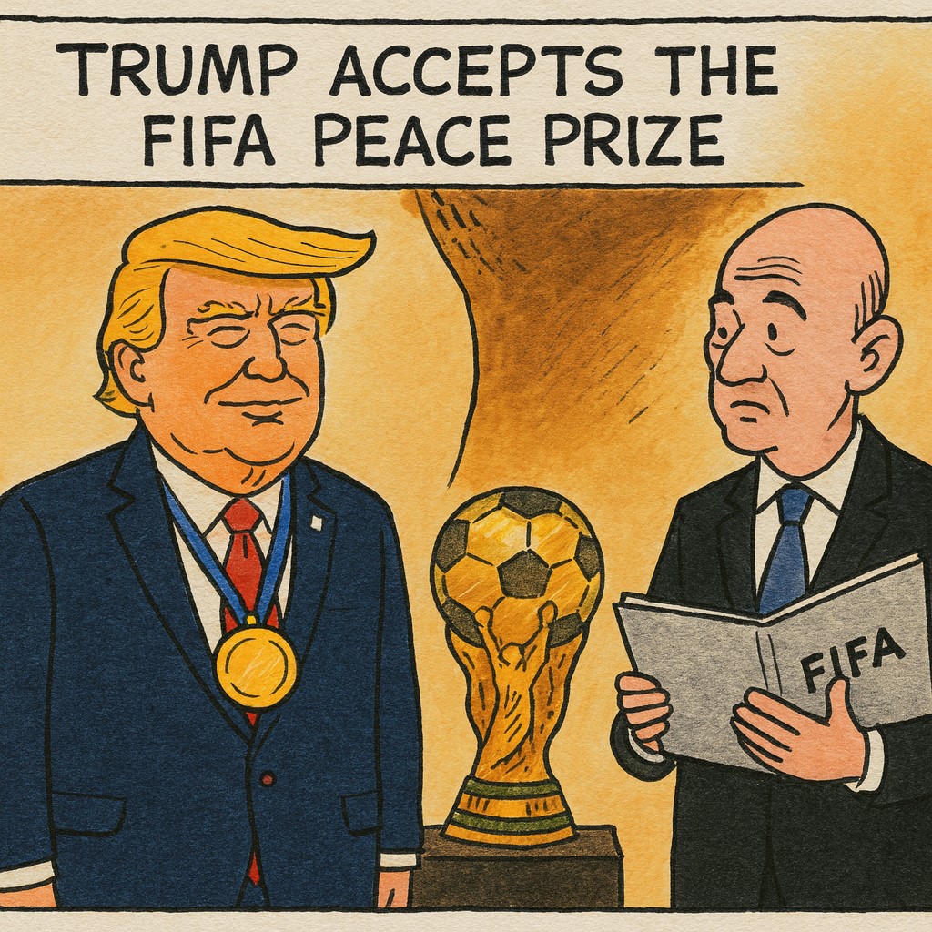 And then came the moment that crystallized the absurdity: Nobel-snubbed Donald Trump accepting the inaugural “FIFA Peace Prize.” A made-up gold trophy, a medal, and a certificate — handed to a man whose tenure was marked by division, not diplomacy. It was a parody of statesmanship, a photo op masquerading as honor. The image of Trump smirking beside a bewildered FIFA official will live on as the perfect metaphor for the GOP’s descent — a party so committed to the illusion of victory that it mistook satire for achievement.
